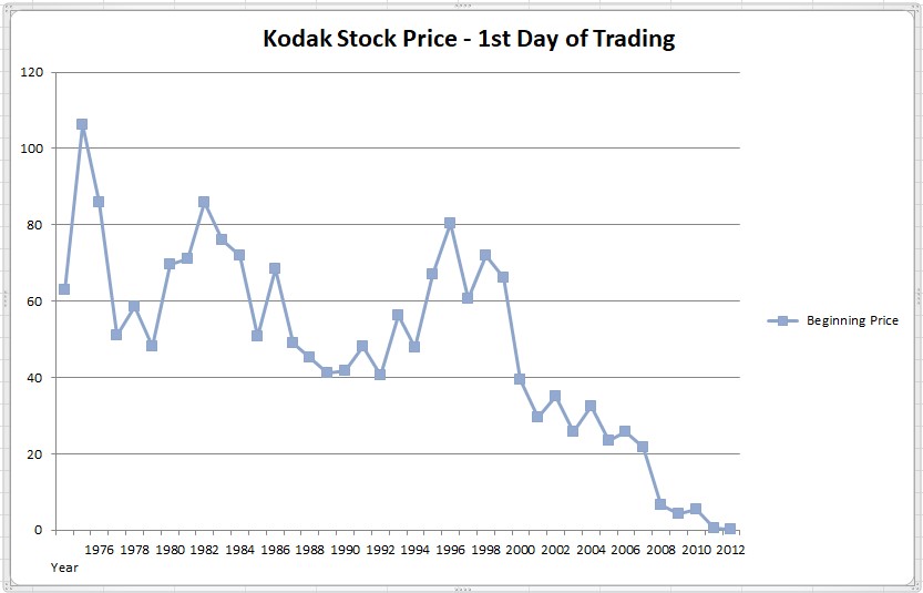 Let’s look at two examples of a gain and a loss position. We will look at Kodak’s stock price in the 1990s to 2000s.